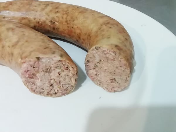 Geraeucherte, grobe Leberwurst im Naturdarm nach Hausschlachter Art