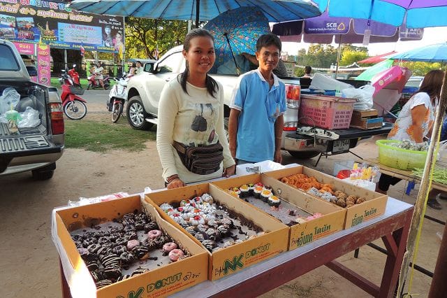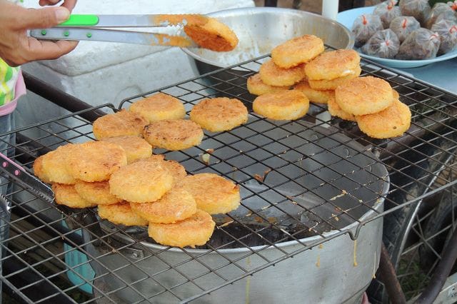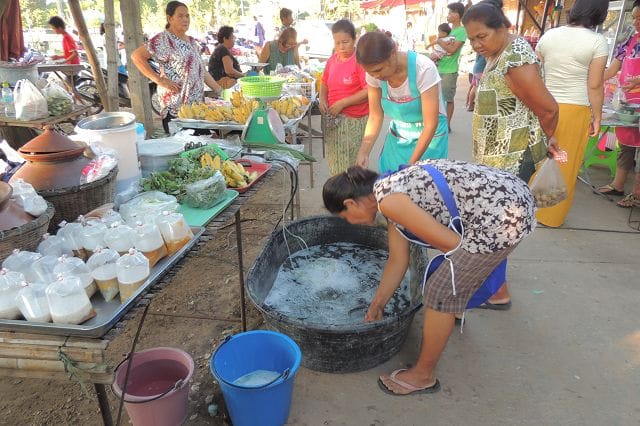 Der Photoapparat war mal wieder auf dem Markt dabei. Soviel neues gab es nicht ausser diesem fritiertem Reis der dann als „Yam“ angemacht wurde.