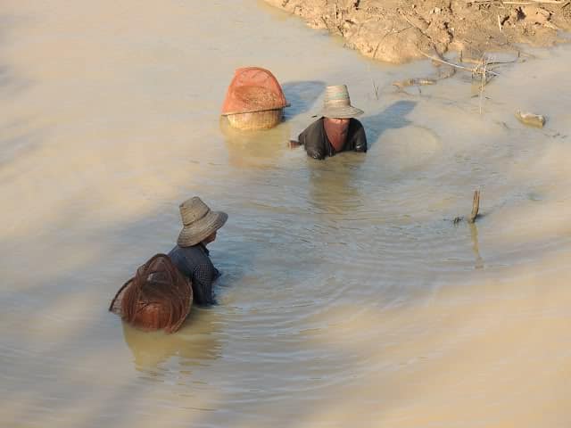 Die zwei waren wohl am Schnecken oder Fische fangen