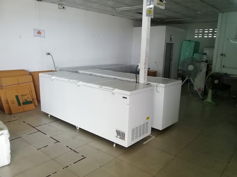 Bei NIM in Roi Et hat es Gefriertruhen oder Kuehltruhen wo die Boxen zwischen gelagert werden.