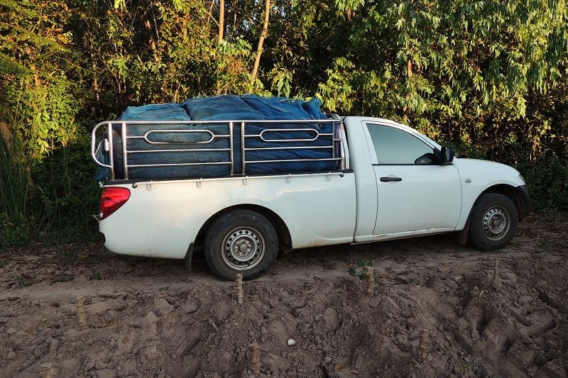Es gibt auch noch Reishuelsenasche fuer 40 Bath/Tonne. Hier auf dem Auto sind 1.7 to drauf