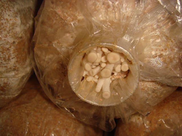 Sollten die Beutel nach ein paar Monaten ausgedient haben, werden die Beutelinnhalte wiederverwendet und mit den braunen Pilzsporen geimpft. Mit den „het fang“