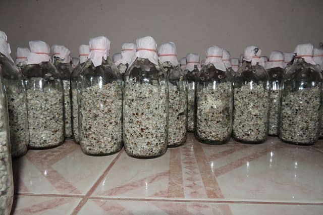 Und wie schon gehabt. Noch mit Reismehl vermischen, sterilisieren und mit den Pilzsporen impfen.