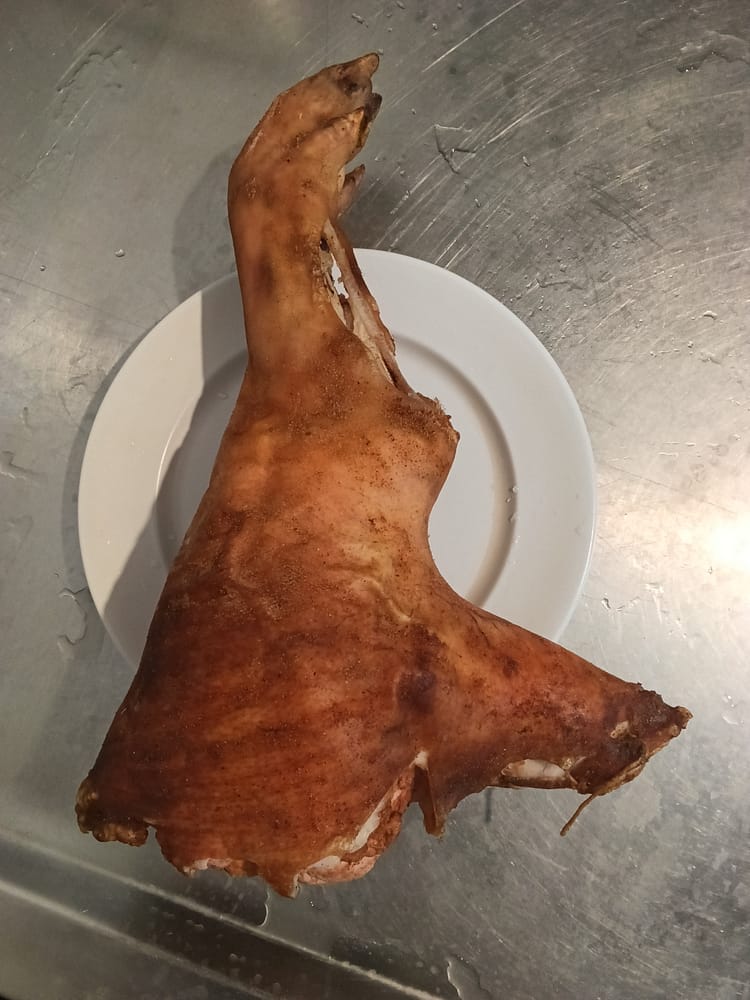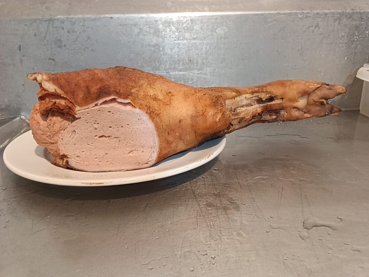 Etwas rustikales. Ein gefuellter Schweinsfuss