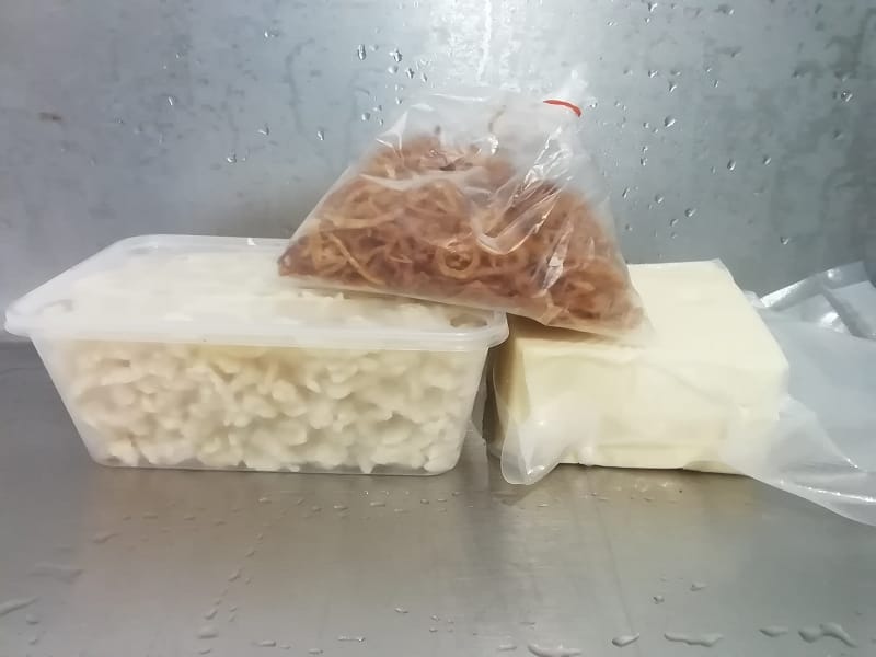 Ein Kaesspatzen Set bestehend aus den Spatzen, Ammerlaender Kaese und geroesteten Zwiebeln.