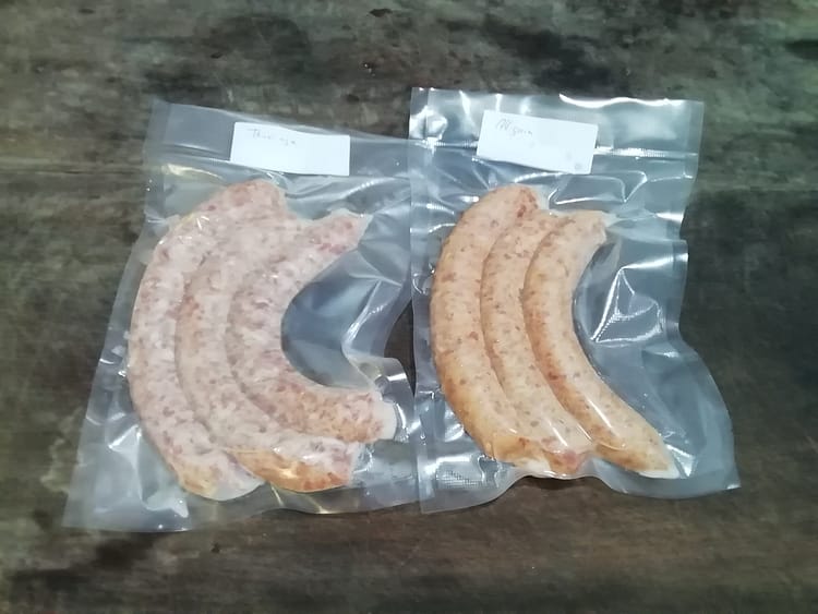 Die Pfaelzer Bratwurst hat eine leichte Muskatnote. Ohne Kuemmel oder Majoran.