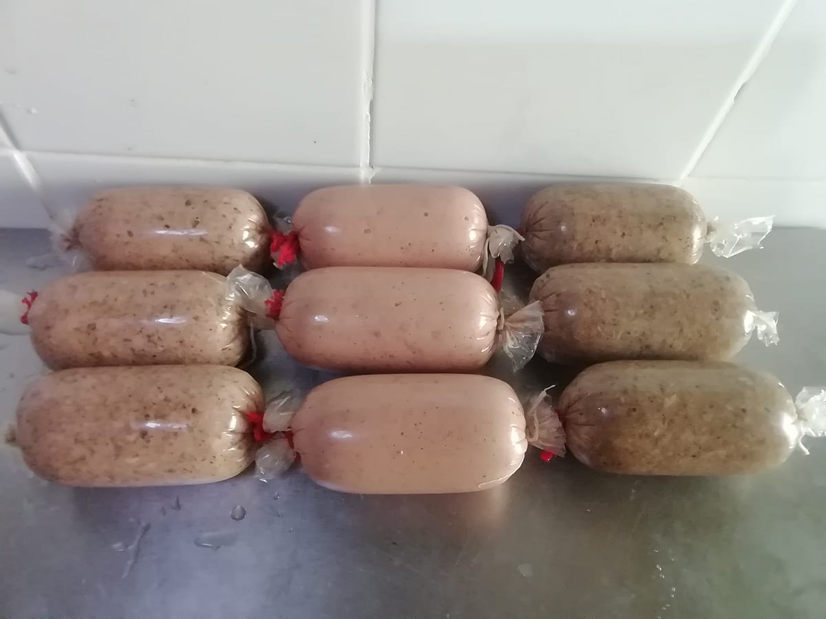 Im Gegensatz zu den anderen Leberwuersten mit Kochsalz gesalzen und deswegen ihre graeuliche Farbe.