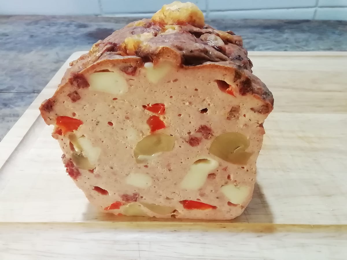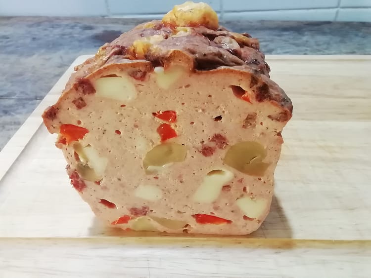 Feiner Pizzaleberkaese mit Champion, Ammerlaender Kaese, Salami und Paprika. Gewuerzt dann noch mit zusaetzlich Oregano