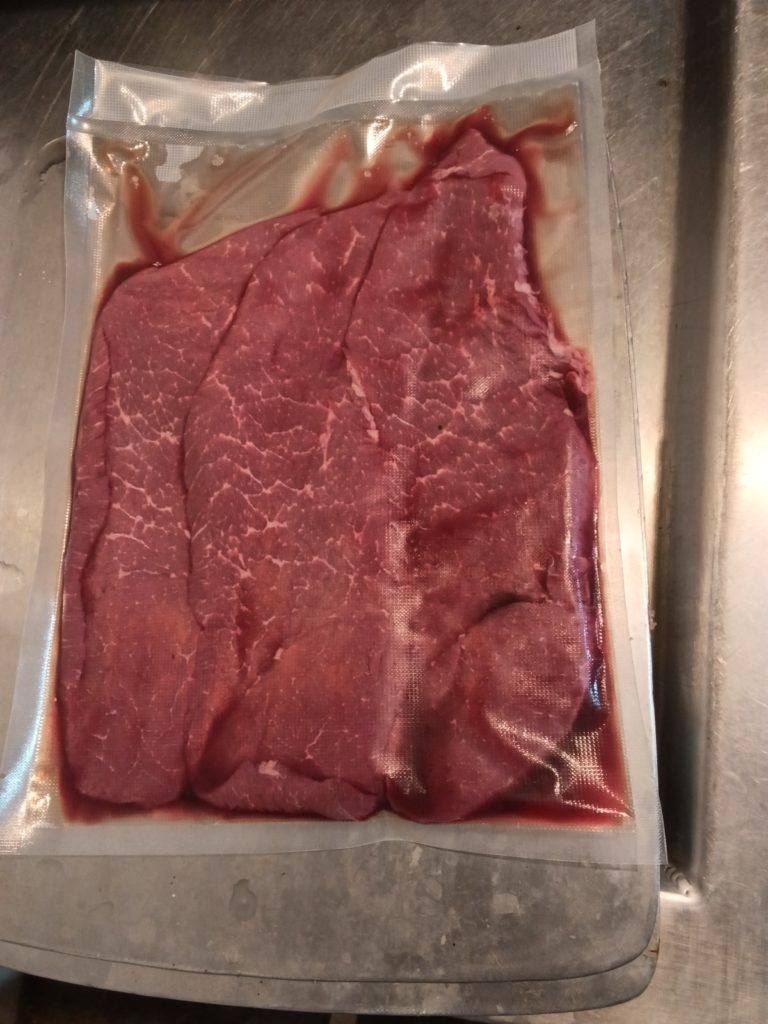 Fertig geschnittenes Rinderrouladenfleisch aus der Oberschale fuer 350 Baht das Kilo