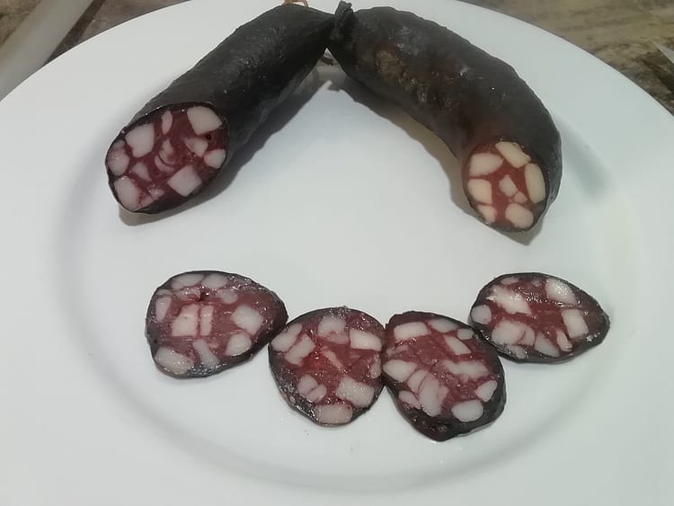 Geraeucherte Schwarzwurst.