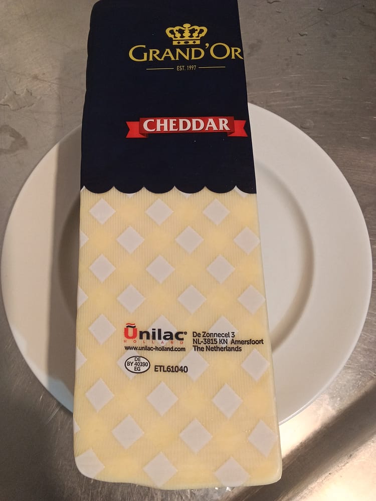 Einen Cheddar Kaese von Grand Or fuer 590 Baht das Kilo.