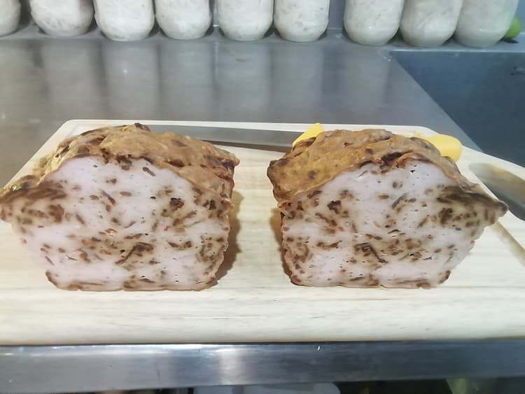 Ich habe auch den Preis vom gefuellten Schweinebauch gesenkt. Nun nur noch 400 Baht das Kilo.