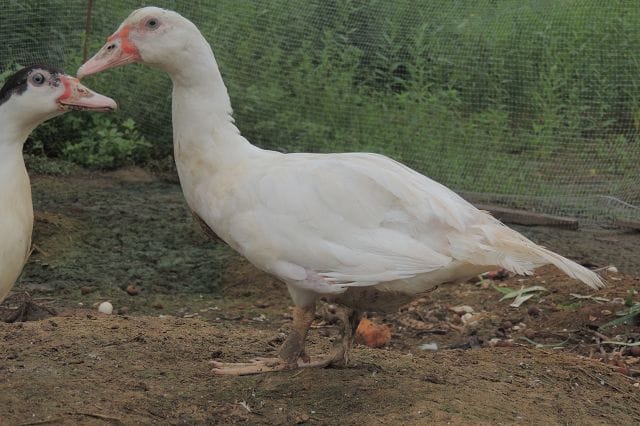 Muscovy, = Bei uns sagt man da Warzenenten. Sind recht leise.