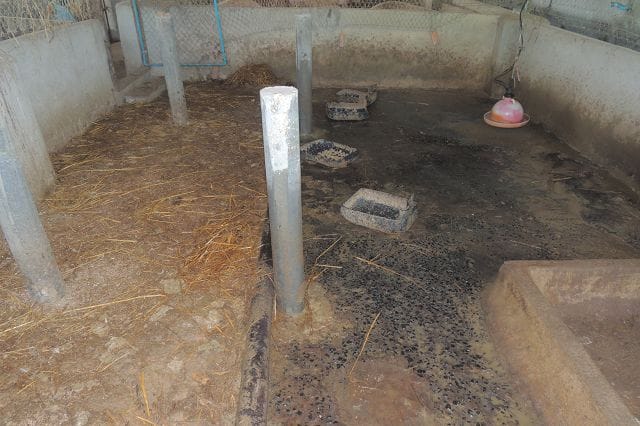 Außerhalb waren von den Vorbesitzern die Abteile für die Sauen gebaut. Die hab ich jetzt hald grob unterteilt und denen ein Wasserbecken eingerichtet.