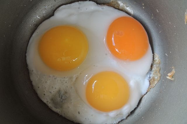 Hier sieht man gut was das Entenfertigfutter in der Eierfarbe ausmacht. Das rechte Ei mit dem satten orange, das ist von den Legeenten wo einen Teil Fertigfutter bekommen. Die anderen 2 Eier ist ein Ei von den Warzenenten. Die bekommen kein Fertigfutter, da sind die Eier gelb vom Mais oder/und Gratin.