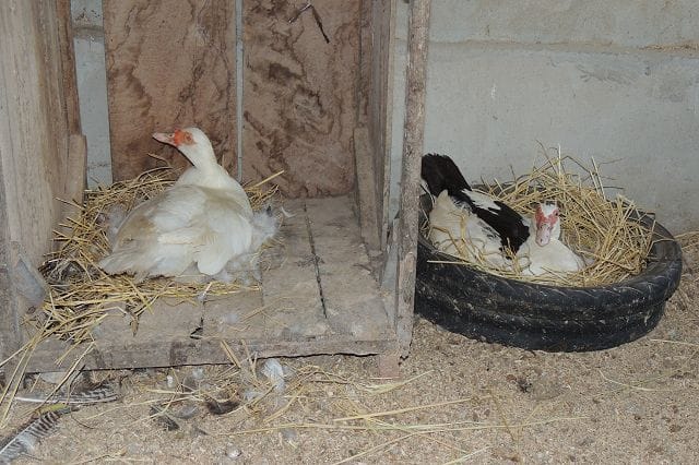 In der Blogsuche wurde auch einmal nach Nester fuer die Warzenenten gesucht. Ich nehm da zwei alte Mopedreifen und stell die uebereinander und polster das dann ein wenig mit Stroh aus. Das funktioniert eigentlich ganz gut. Bei den Gaensen auch.
