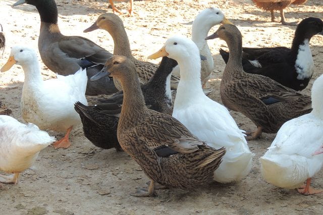 Khaki Campbell und Indian Runner. Indische Laufenten. Hab ich aber noch nie hier gesehen. Die Khaki sind die braunen wo man eigentlich bei uns immer so sieht.