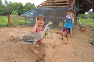 So sind sie dann alle einmal zum Schwiegervater gefahren worden. Dort konnten sie auf dem Reisfeld schnattern so laut sie wollen.