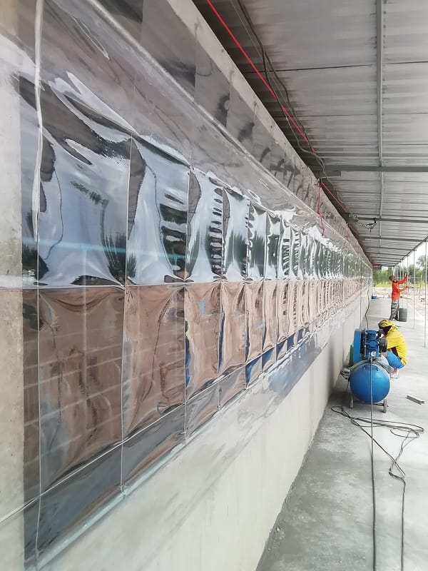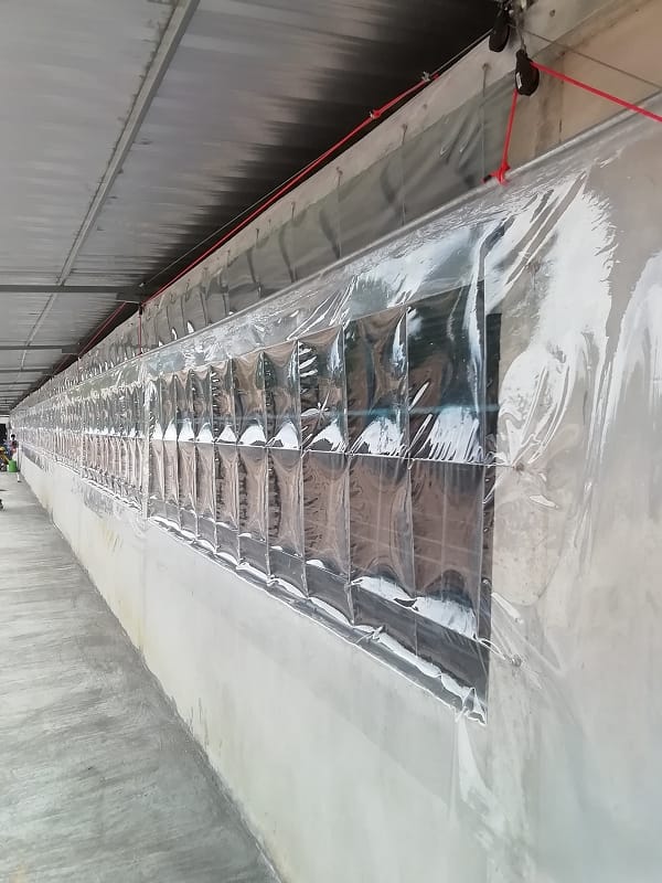Durch die Folie an den Fenstern muss die Luft durch die Wasser gekuehlten Loecher