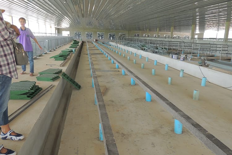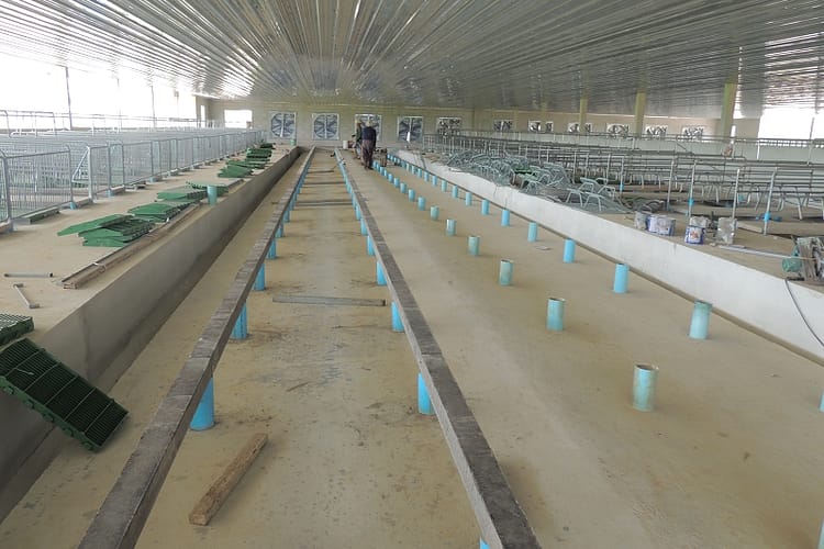 Ein Bekannter von der Biogenossenschaft baut einen Stall fuer um die 400 Muttersauen gerade und den schauten wir an.