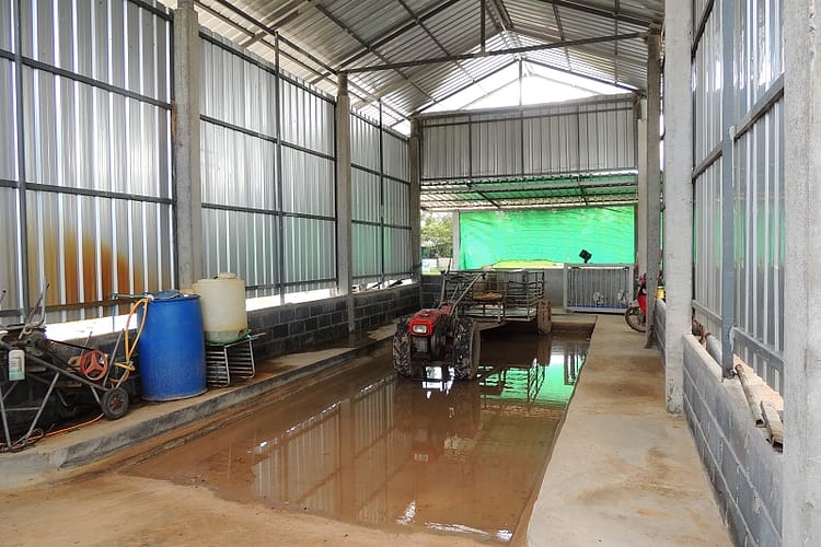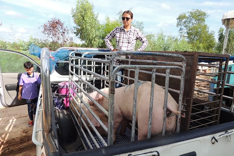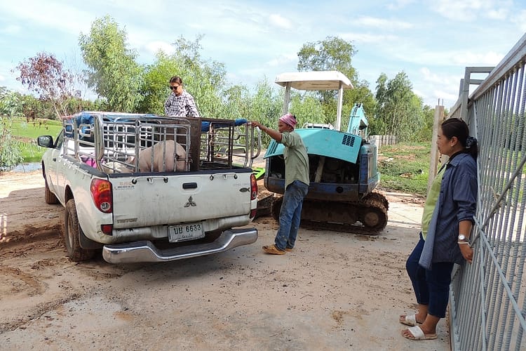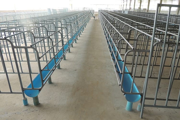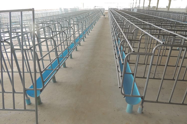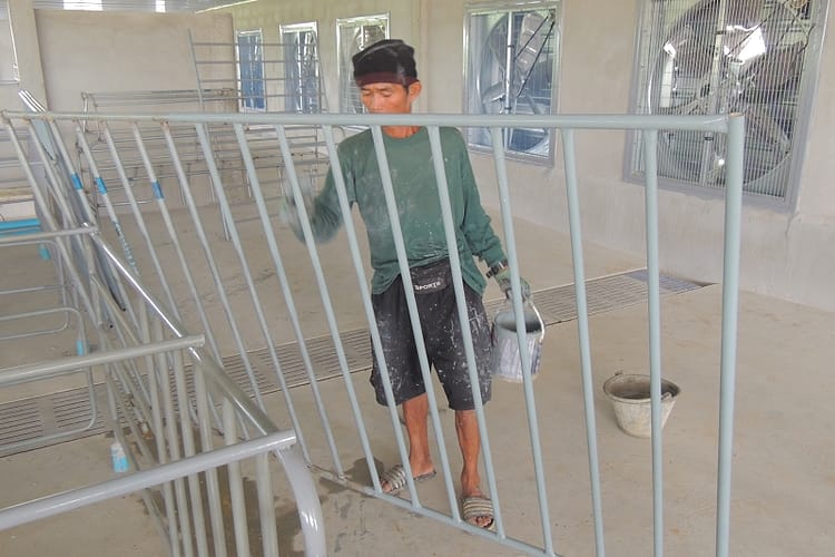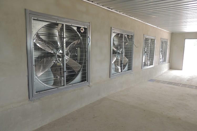 Und da war schon bei ihm waren nahmen wir zwei Landrasseschweine mit. Auf dem Bild die Hygieneschleuse wo Kaeufer auf die Schweine warten.
