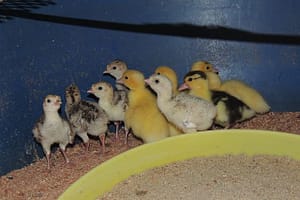 Das ganze junge Federvieh kommt am Anfang jetzt immer unter so ein Netz. Und seitdem ist die Todesrate um einiges gesunken.