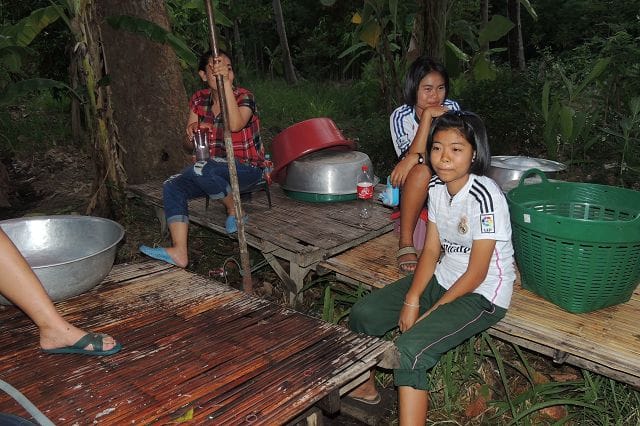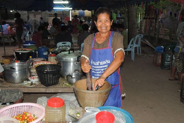Und hier haben sie dann Zwiebel, Schwarten  und anderes Gruenzeug geschnitten um ihr Laab und anderes zu wuerzen.
