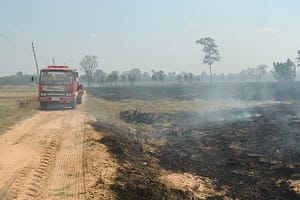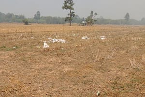 Schade um das gute Stroh was auf dem Feld lag. Das Stroh was auf einem Rai liegt soll ungefaehr einen Gegenwert von einem Sack Duenger haben. So um die 10000 Bath gingen dann in Flammen auf. Das Ziel sollte ja sein soviel wie moeglich organisches Material in den Boden einzubringen. Nur jetzt gibt es nichts mehr zum einbringen.