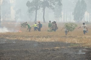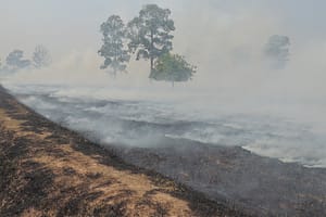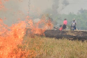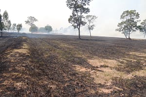 Das Feuer drohte dann in die Naehe eines Dorfes zu gelangen.